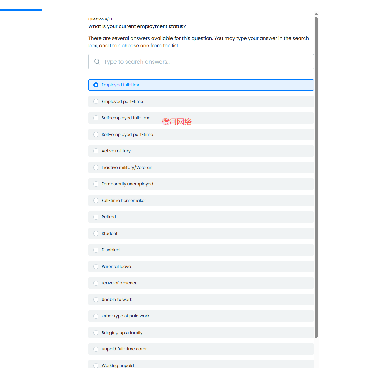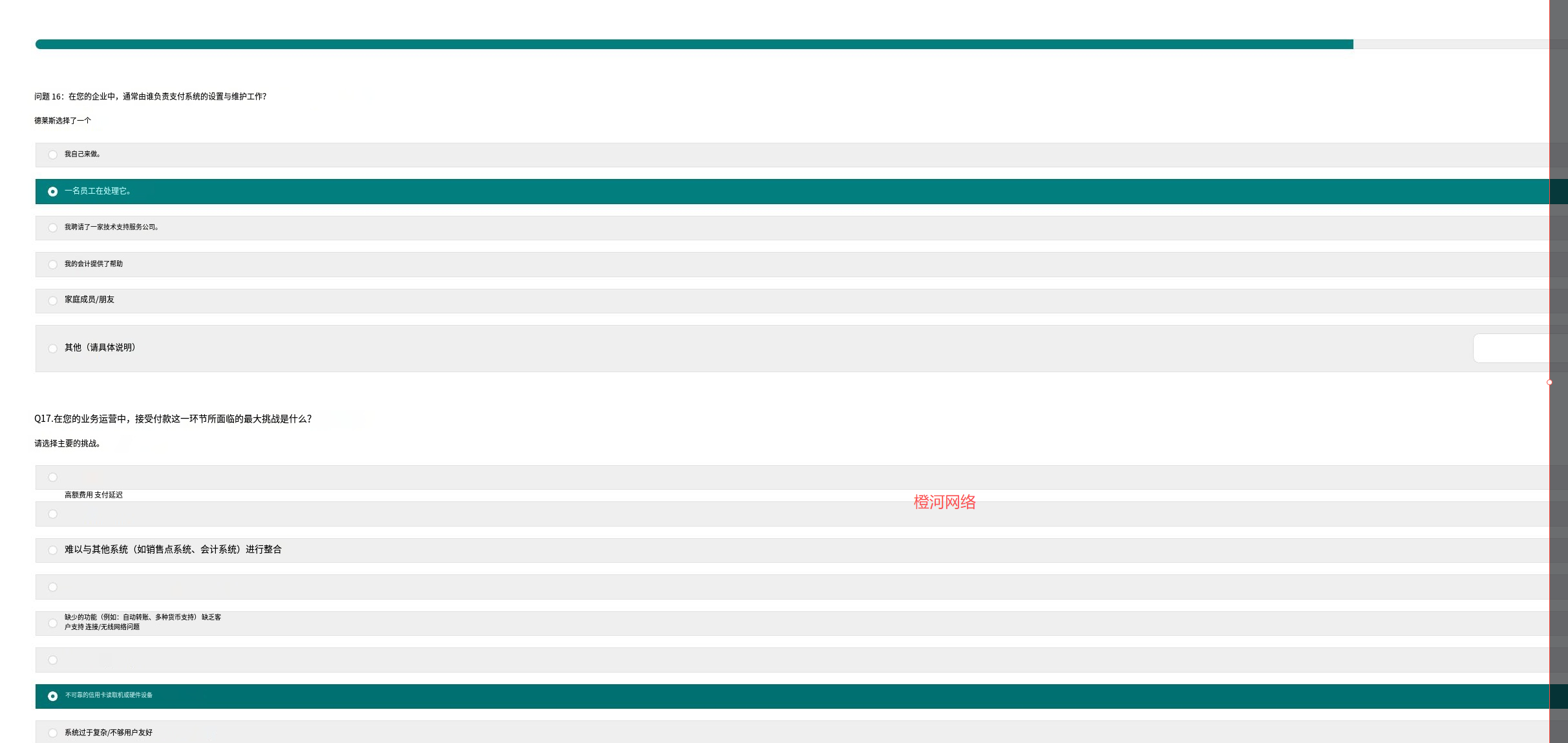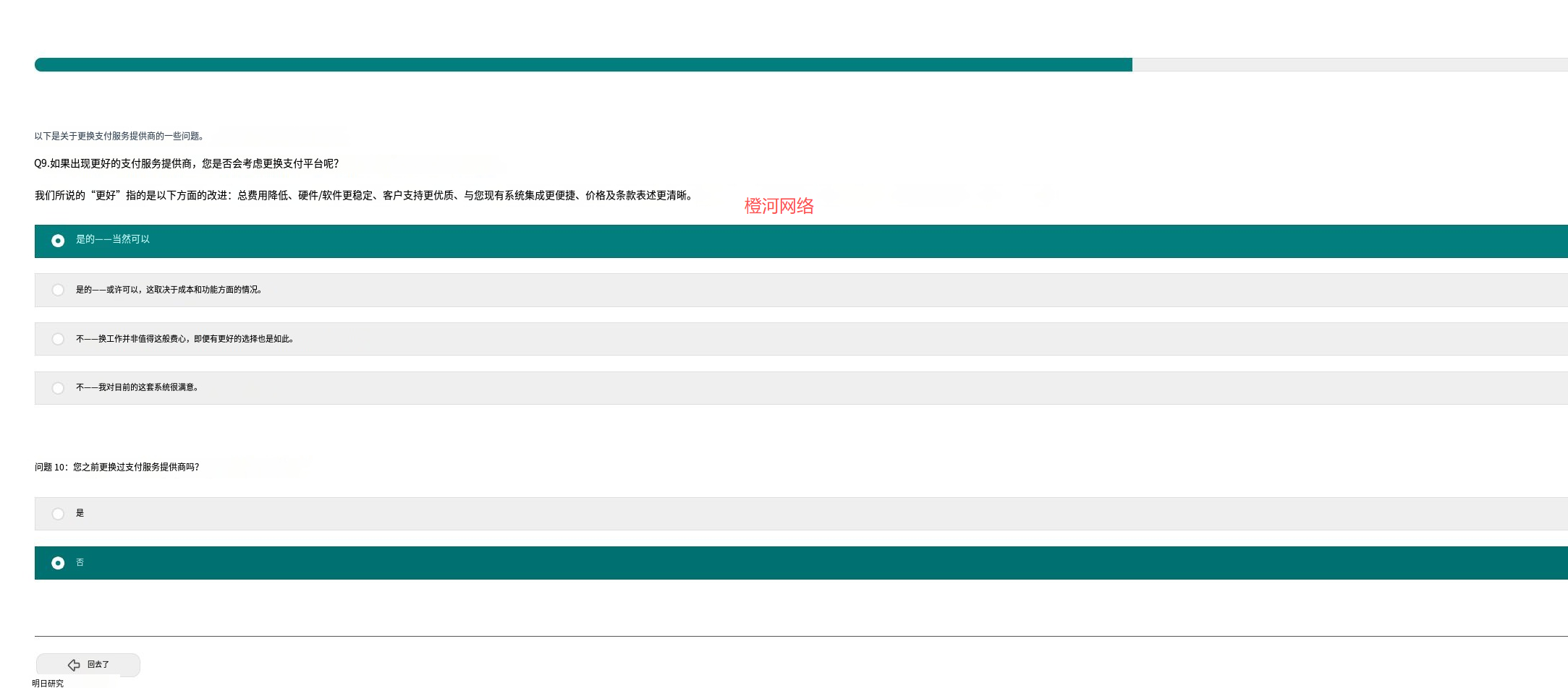 上面图片里标红的方框里,就是这份问卷的进度条,我们可以根据随查看自己的答题进度。