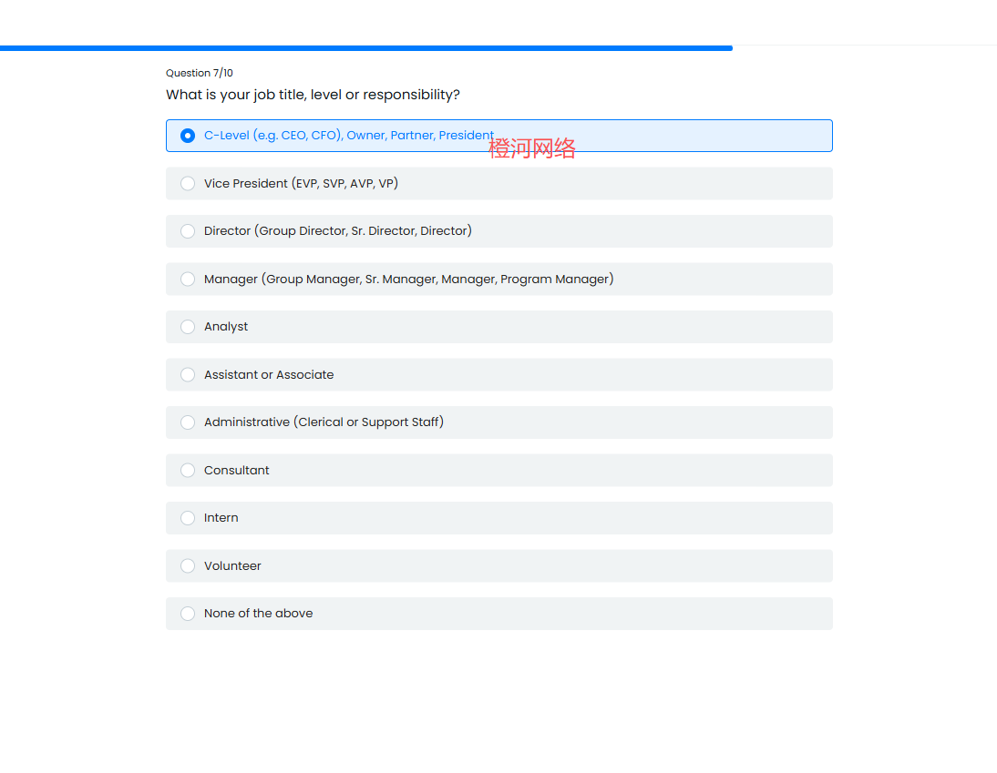 第7个问题,问我们在公司的具体职位,是董事长,还是部门经理,还是普通职员。