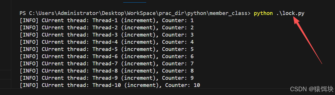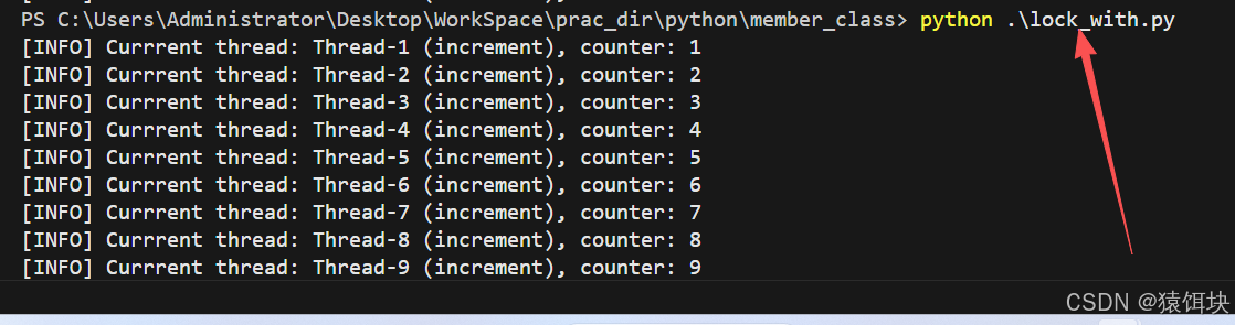 info("Currrent thread: {0}, counter: {1}".format(threading.current_thread().name, counter))