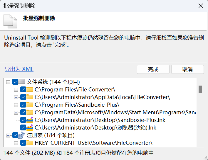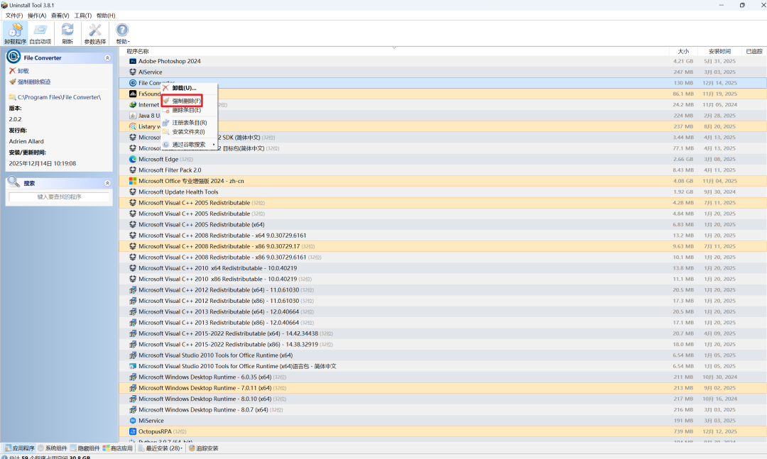 它的卸载操作和极客几乎一样:右键点软件就能直接卸载,遇到顽固的还能强制删除。关键是卸载时会自动扫残留文件夹和注册表,清理得干干净净,不像有些工具卸完还留一堆垃圾。