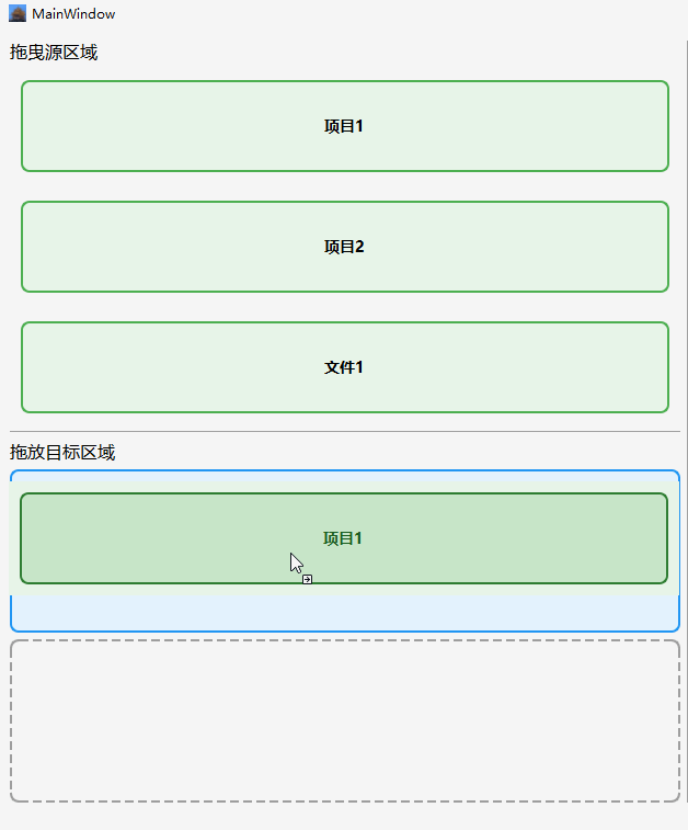 对于拖曳源,我们需要启动拖曳操作并设置MIME数据。对于放置目标,我们需要接受拖曳事件并处理MIME数据。