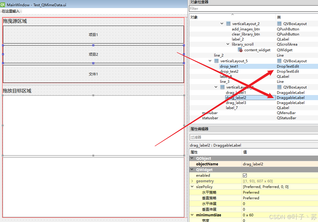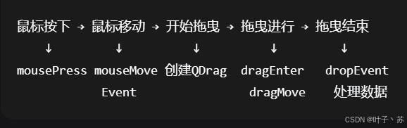 | 拖曳源 (Drag Source) | 开始拖曳操作的部件 | mousePressEvent, mouseMoveEvent |