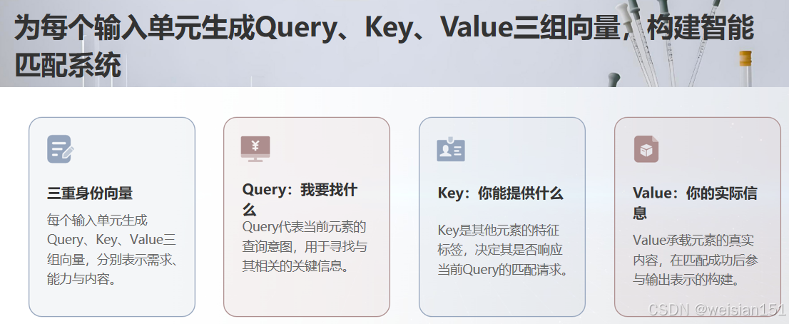 步骤 1:给每个词三个身份卡 ------ Query, Key, Value