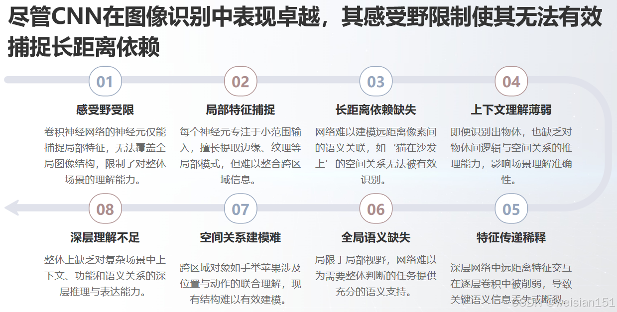 这些需要全局上下文理解的任务,恰恰是 CNN 的短板。