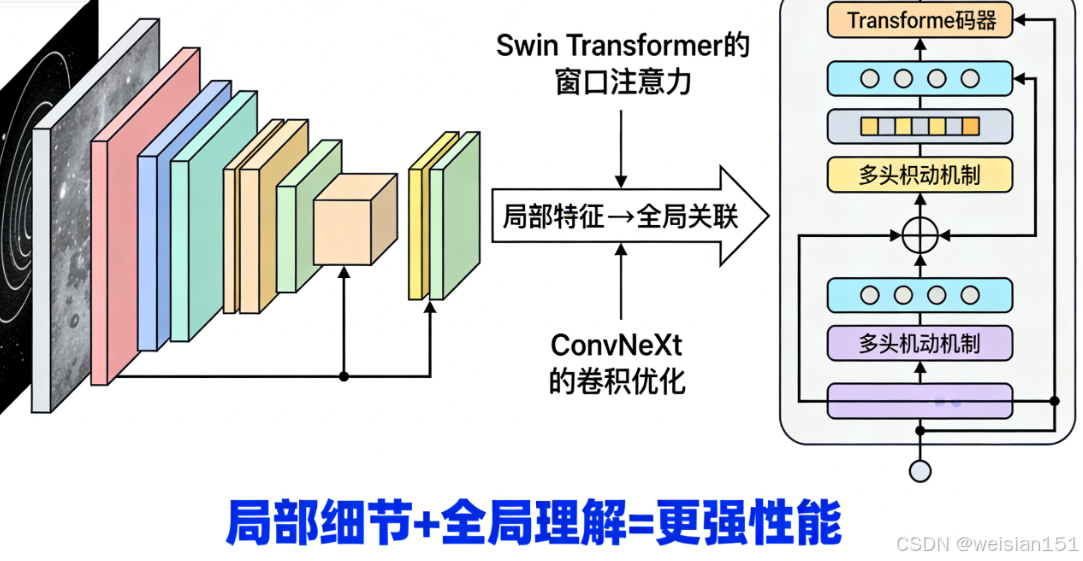 但现实是:ViT 在小数据集上表现不如 CNN(因为缺乏局部先验)。于是,混合架构兴起: