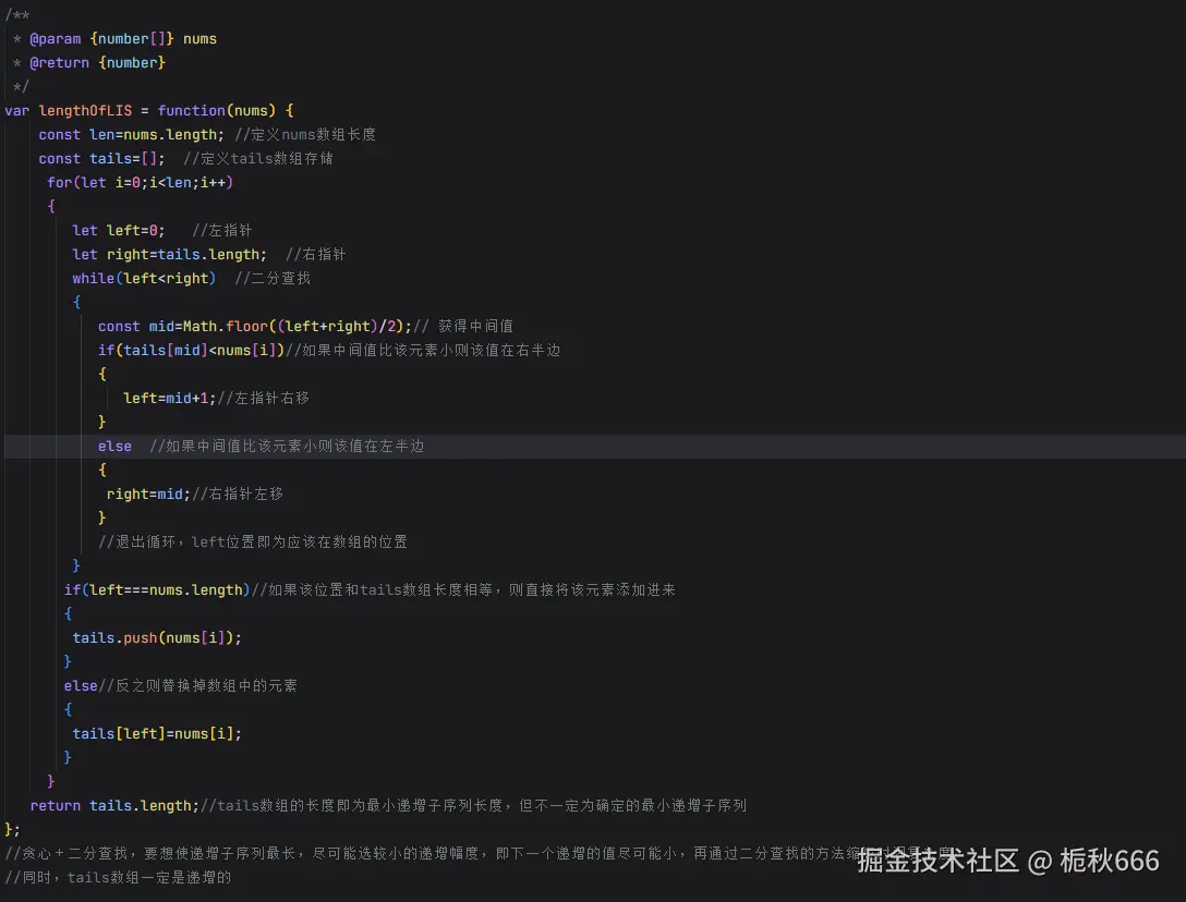 那么长度为 j+1 的 LIS 的前 i+1 个元素,构成了一个长度为 i+1 的递增子序列,其末尾 < tails[j] ≤ tails[i],
