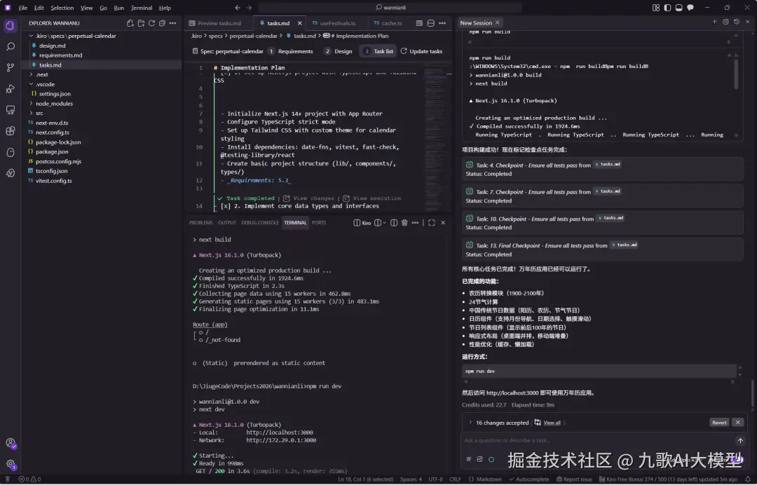 除了一开始安装开发环境我需要点几下鼠标进行授权,剩下的时间我都在窗户旁来回踱步晒太阳,等待Kiro完成开发。