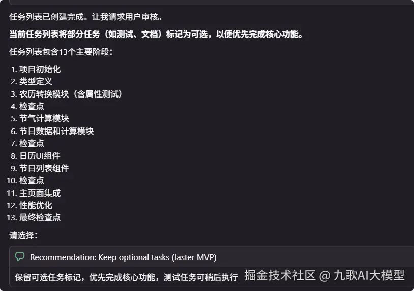接下来我们进入最后一个过程,生成开发任务的Task List,并询问你要不要开发Faster Mvp产品。