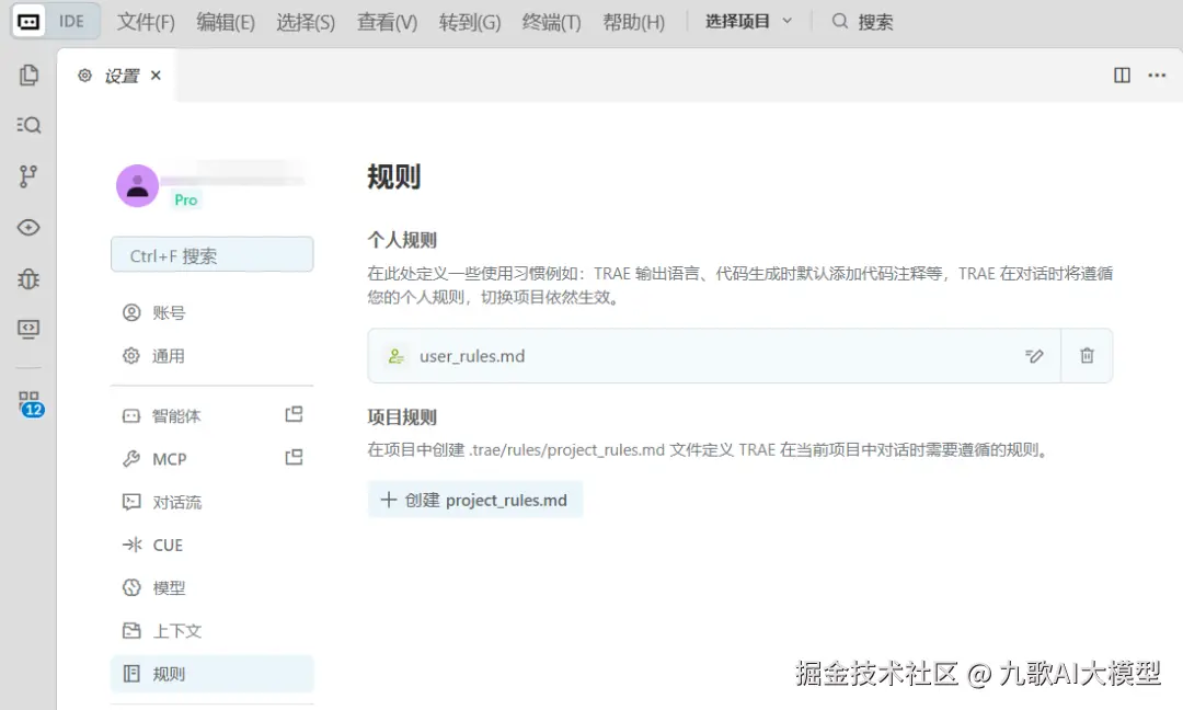 其实Cursor和Trae等产品已经有了这样的意图,他们都在自己的产品上增加了Rules功能。这个功能就是用来编写限制性的提示词,用来约束编程Agent,防止其跑偏或者重复犯同样的错误。
