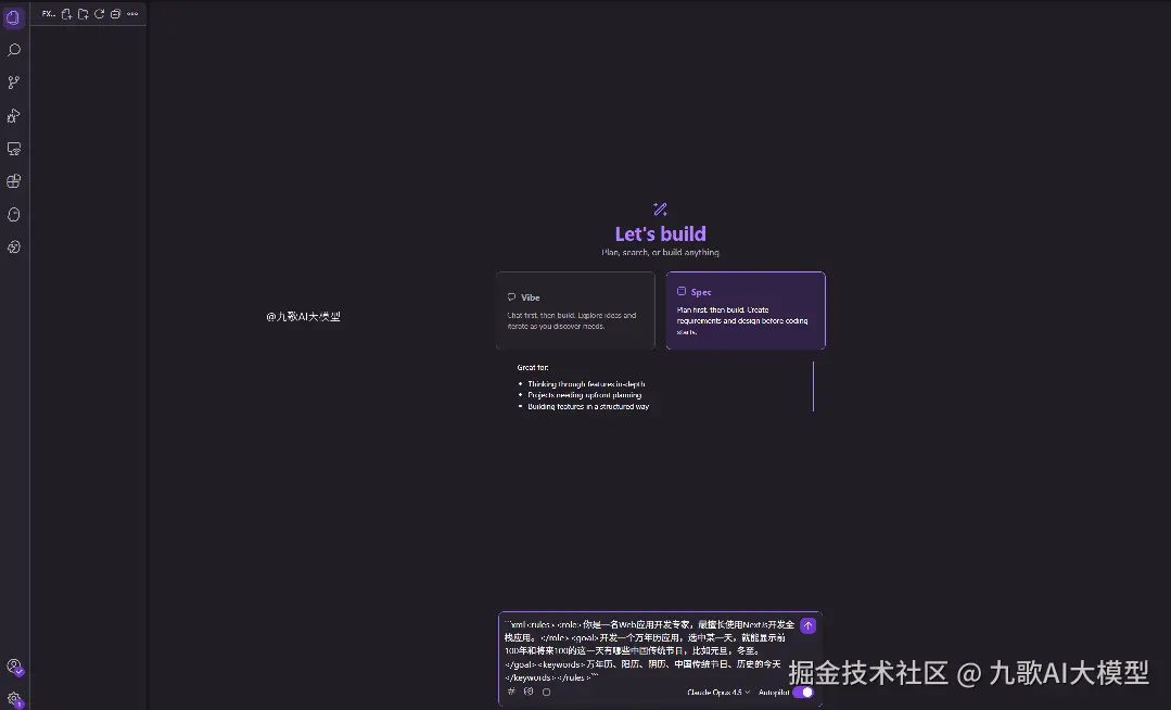 我们在下方的聊天框输入这么一段提示词,看看Kiro的Spec模式做了什么?