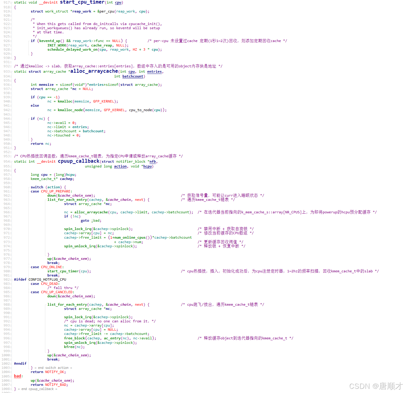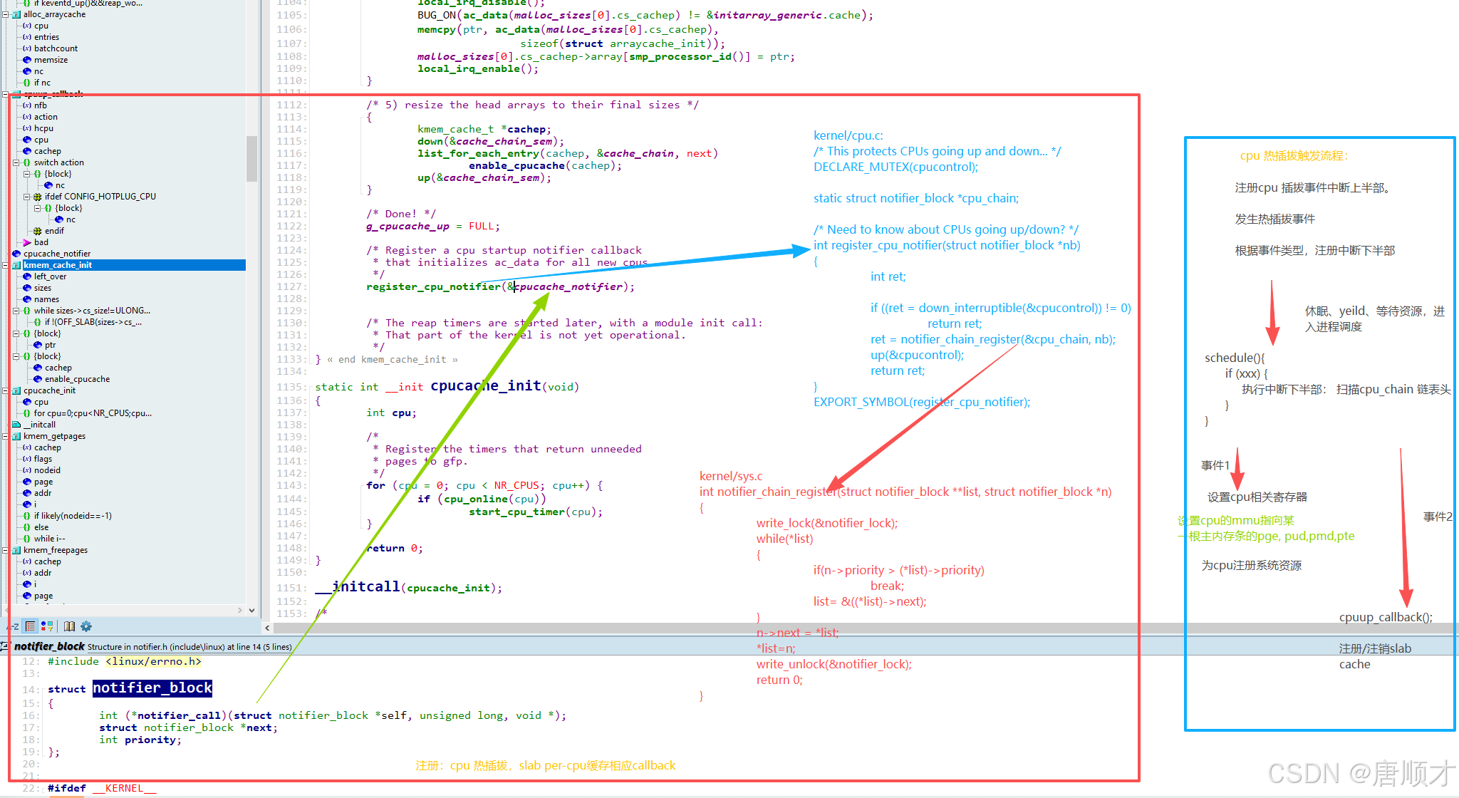 smp系统,cpu热插拔流程图,per-cpu slab无锁缓存构建、析构(slab元数据和object数组回收)代码解析: