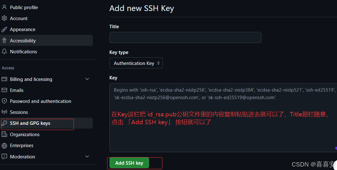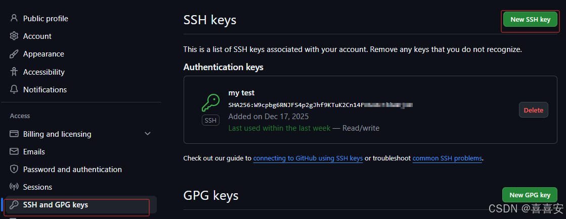 3、在GitHub上添加SSH key