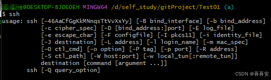 Linux和Mac都是默认安装了SSH,而Windows系统安装了Git Bash也是带了SSH的。我们可以在终端(Windows下在Git Bash里)输入ssh 如果出现以下提示证明你本机已经安装了SSH,否则请自行搜索安装下: