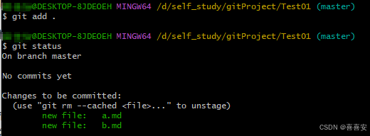 git status会显示绿色字体,说明文件已进暂存区。