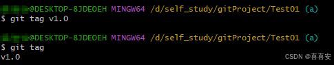 所以如果想要新建一个标签很简单,比如 git tag v1.0 就代表我在当前代码状态下新建了一个v1.0的标签,输入git tag可以查看历史tag记录。