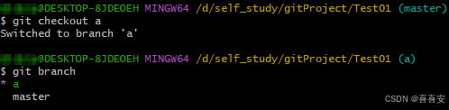 如果我们想在a分支上进行开发,首先要切换到a分支上去,所以使用以下命令切换分支: