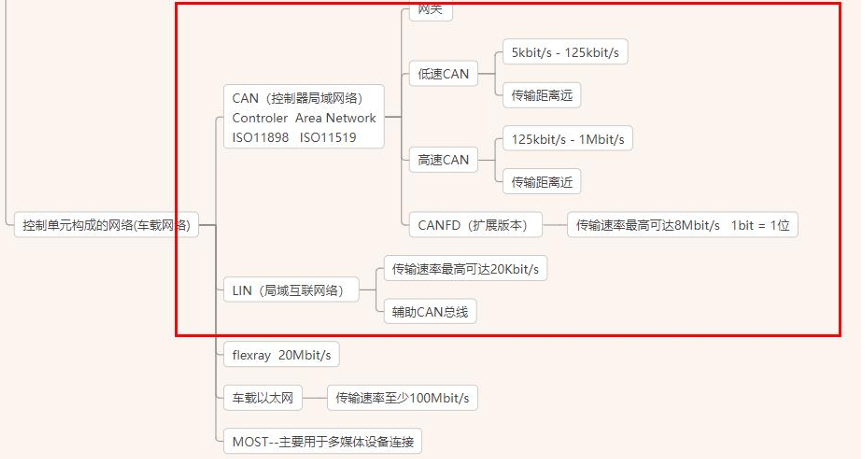 分,低速CAN用于车身、座舱设备方面。