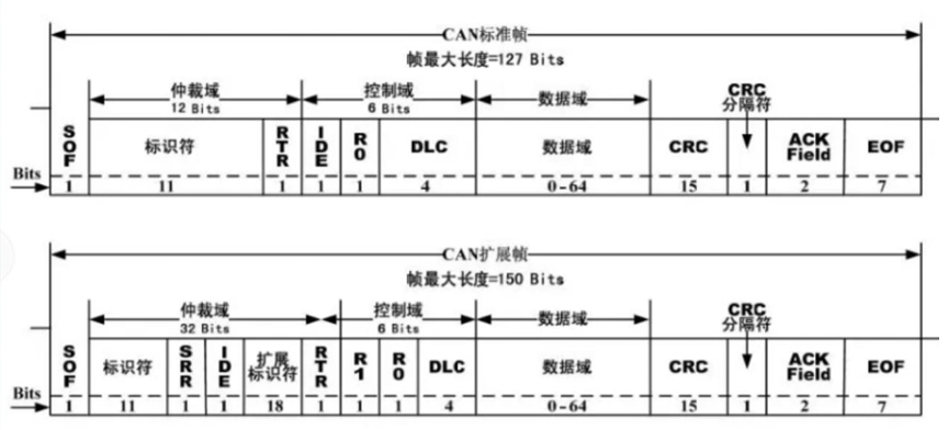- CAN 总线发送2进制位的最小数量单位为"帧 "frame(报文), 传输数据最小的一个单位(最少的二进制位)都必须考虑传输控制信息 、传输的数据本身的信息 、校验信息 。