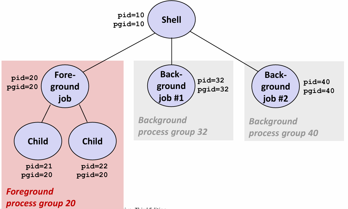 - 按下 Ctrl-C:内核向前台进程组的所有作业发送 SIGINT 信号(默认行为:终止进程)。