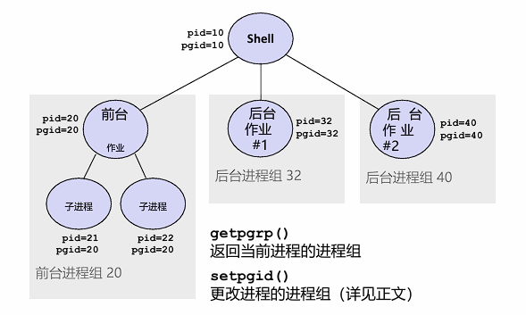 - setpgid():更改进程的进程组