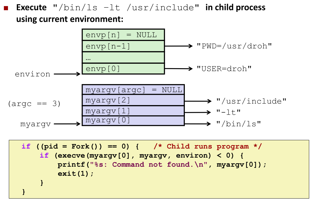 myargv:myargv[0] = "/bin/ls"myargv[1] = "-lt"myargv[2] = "/usr/include"myargv[3] = NULL