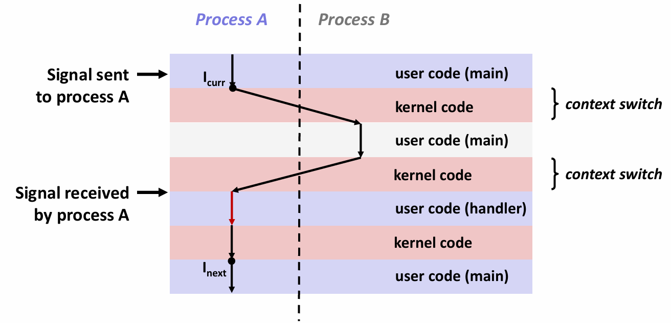 - 信号处理程序是一个独立的逻辑流(非独立进程),与主程序并发执行,但生命周期仅限于处理程序执行期间。