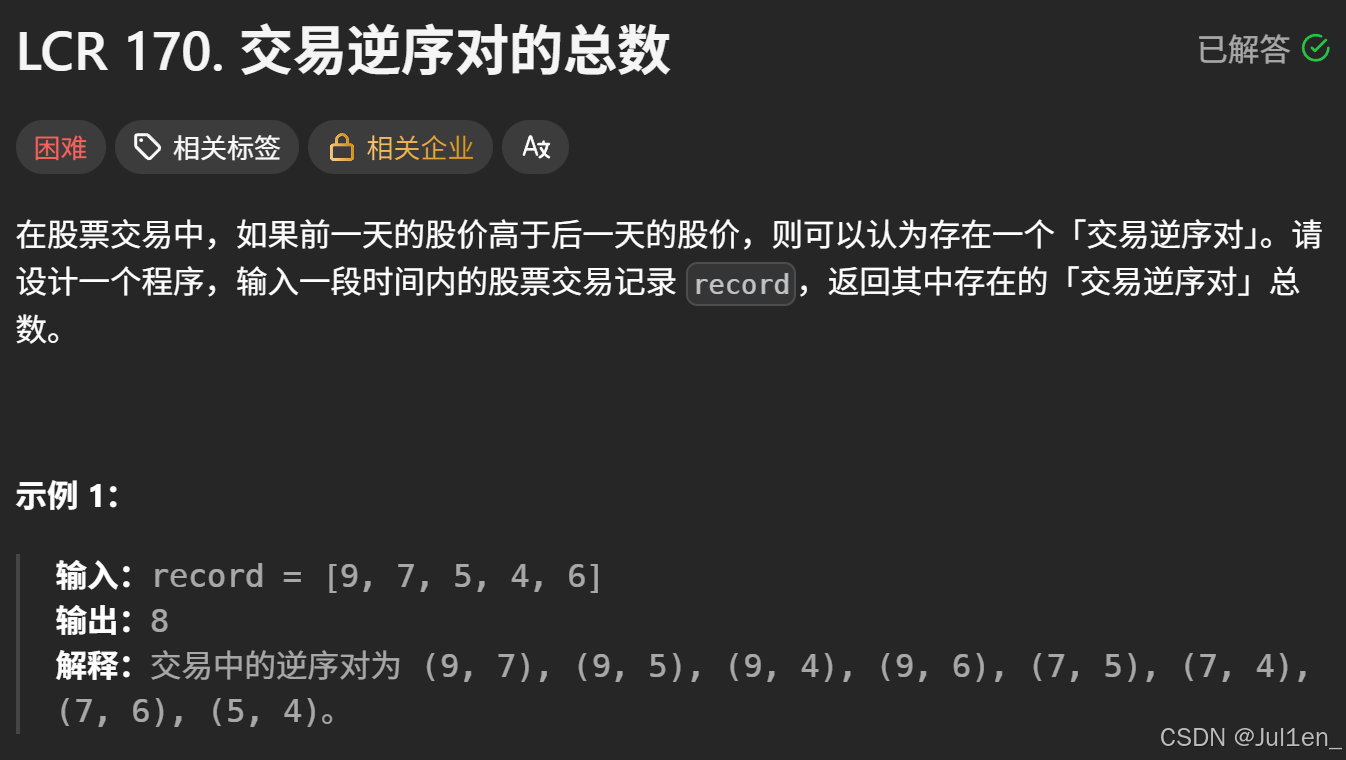 本质上就是依靠"排序数组 + 元素的相对位置不变"的逻辑,从而优化计算逆序对的策略,使其时间复杂度由单个遍历元素的 ++o ( N 2 ) o(N²) o(N2)++ ++->++ ++o ( 1 ) o(1) o(1)++