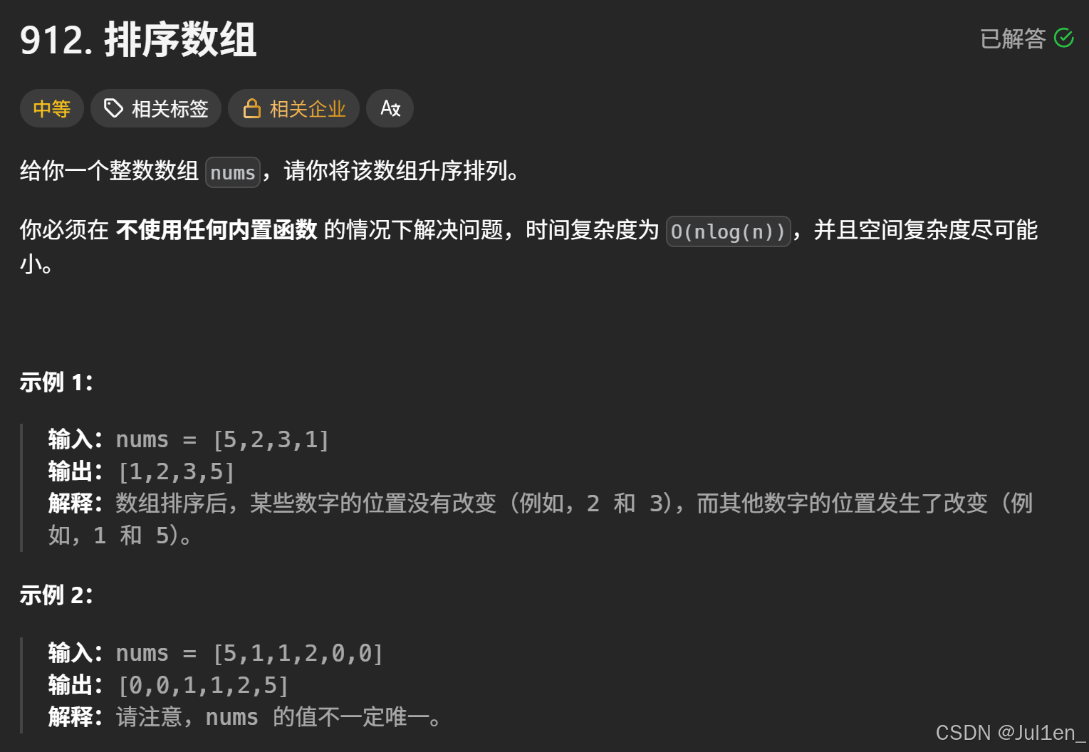 - 数组必然是有序的 -> 根据递归,假设一路递归到只剩一个元素,那它肯定就是有序的,然后一级一级往上返回 -> 那么剩下的数字其实也是底下一层返回来的部分有序的数组,剩下的那部分元素必然有序