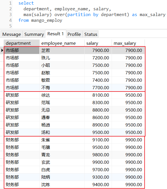 查找每个部门下员工薪水的最大值: