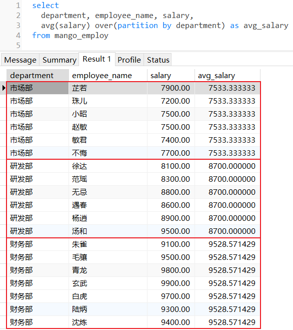 计算每个部门下所有员工薪水平均值: