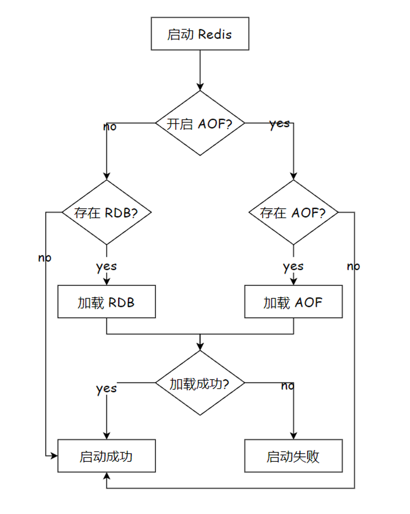 Redis首选AOF文件,如果AOF文件存在就加载这个文件,加载成功就启动成功,如果AOF文件不存在就去加载RDB文件,这是因为AOF文件是实时性备份,数据比RDB更加全,所以首选AOF