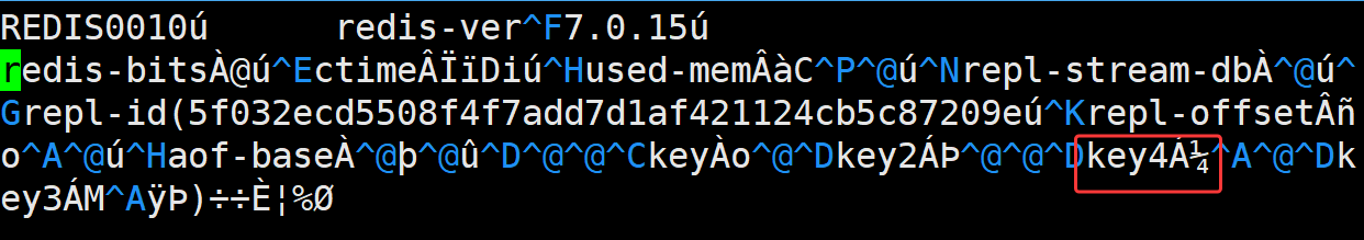 设置完后我们进入rdb快照文件,里面仍只有三个键值对,并没有我们刚刚设置的key4
