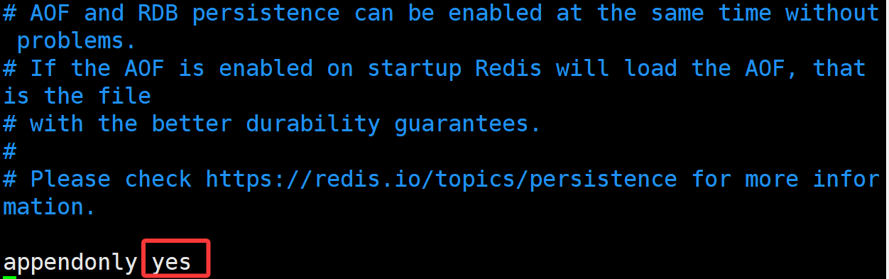 同样要在redis.conf里配置,这里默认是no未开启,我们把no改成yes,此时就开启AOF