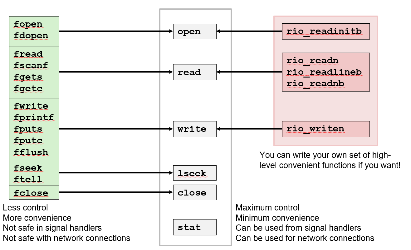 - 一般规则:尽可能使用最高级别的 I/O 函数