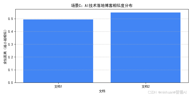 plot_similarity(results_c, "场景C:AI技术落地博客相似度分布")