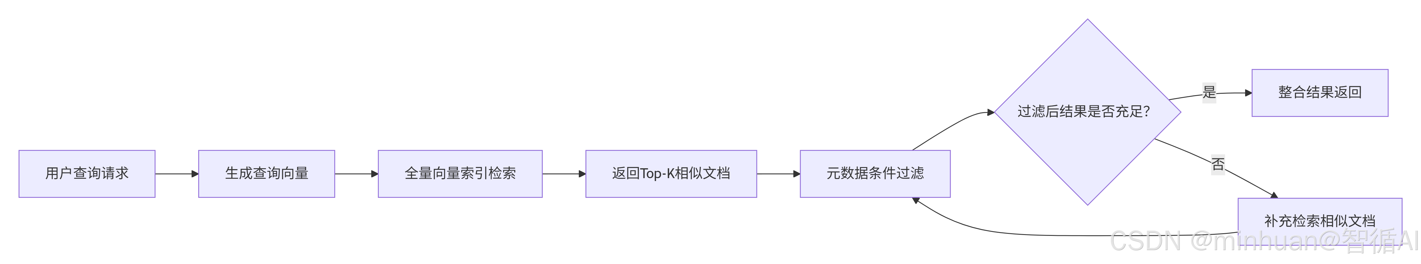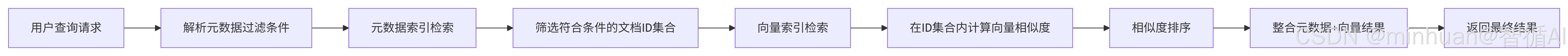 适用于元数据约束较宽松、需优先保证语义相似度的场景(如 "检索与'RAG 技术原理'相似的文档,并排除 2023 年之前的内容"),执行流程如下: