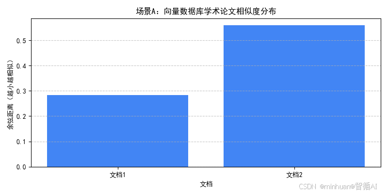 - **场景 A:**仅返回doc2(2024-06-15,学术论文)和doc6(2024-09-05,学术论文),这两个文档同时满足元数据约束和向量相似性,柱状图可直观看到doc6的相似度更高(距离更小);