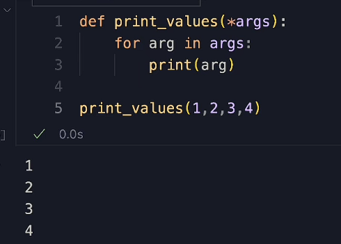 这意味着,无论传入这个函数多少值,都会被打包成一个序列,然后这个函数会遍历 args 打印出里面的每个值。