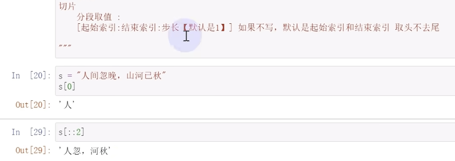 2)取一段值:切片