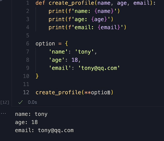 例子1:字典解包后作为多个关键字参数传参