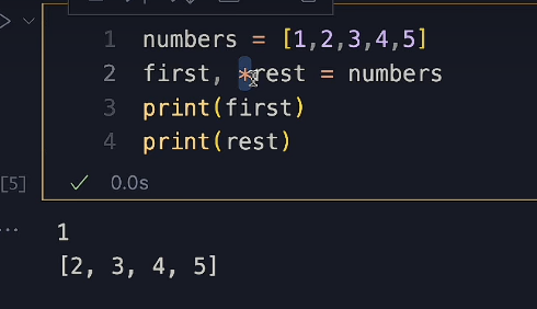第一个值被传入了 first,依然还是一个整数,而剩下的值都被传入成了 rest 中成为列表。
