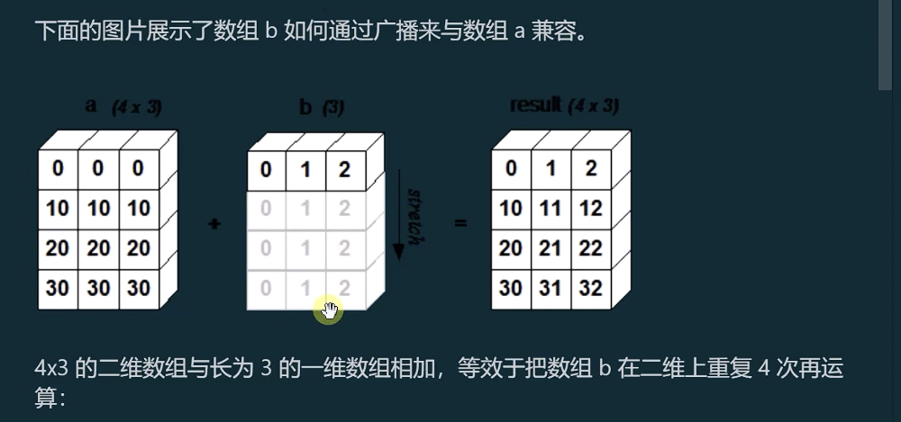 参考:[跟着菜鸟学NumPy]第6课:NumPy数组的广播机制_哔哩哔哩_bilibili