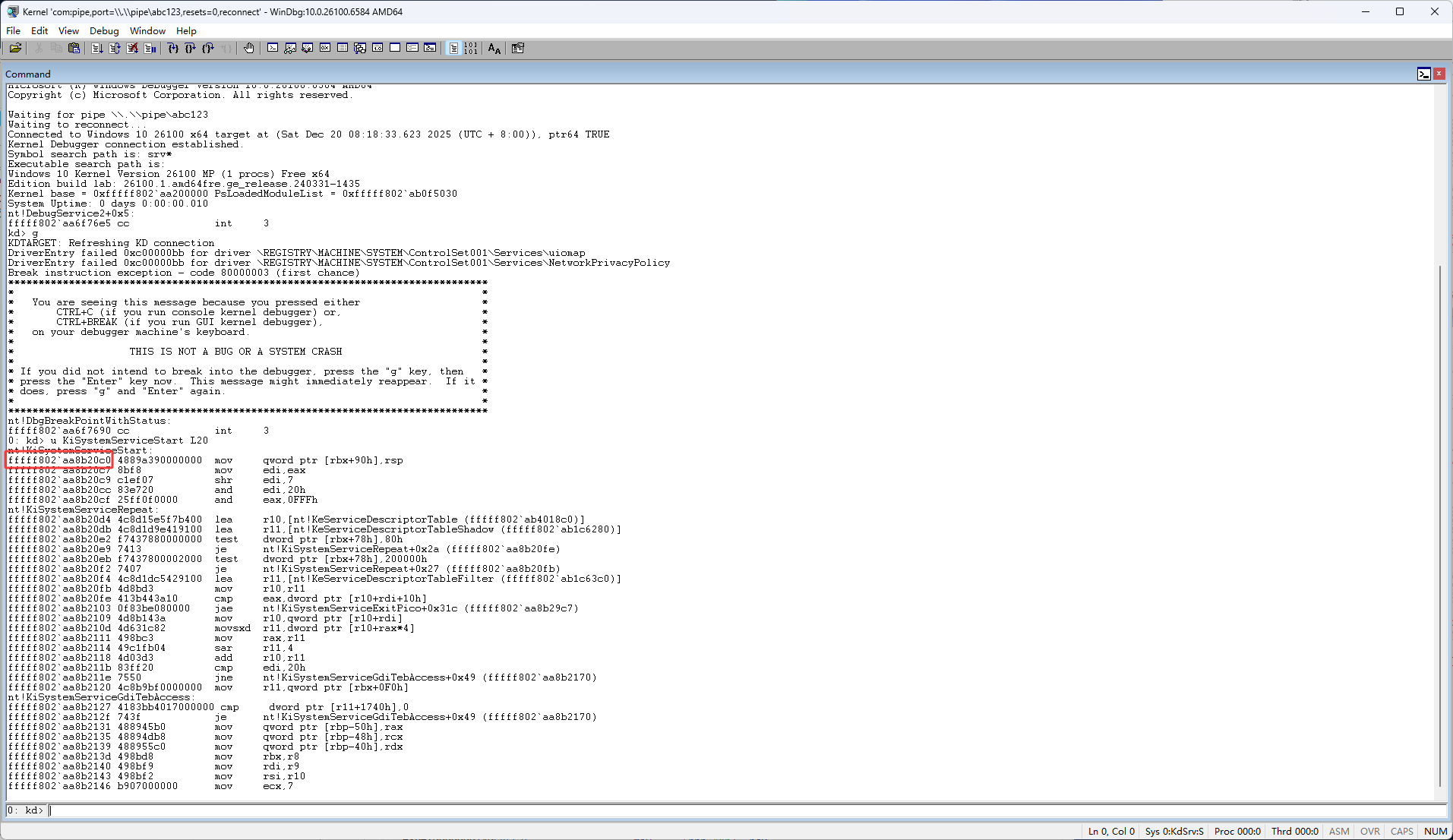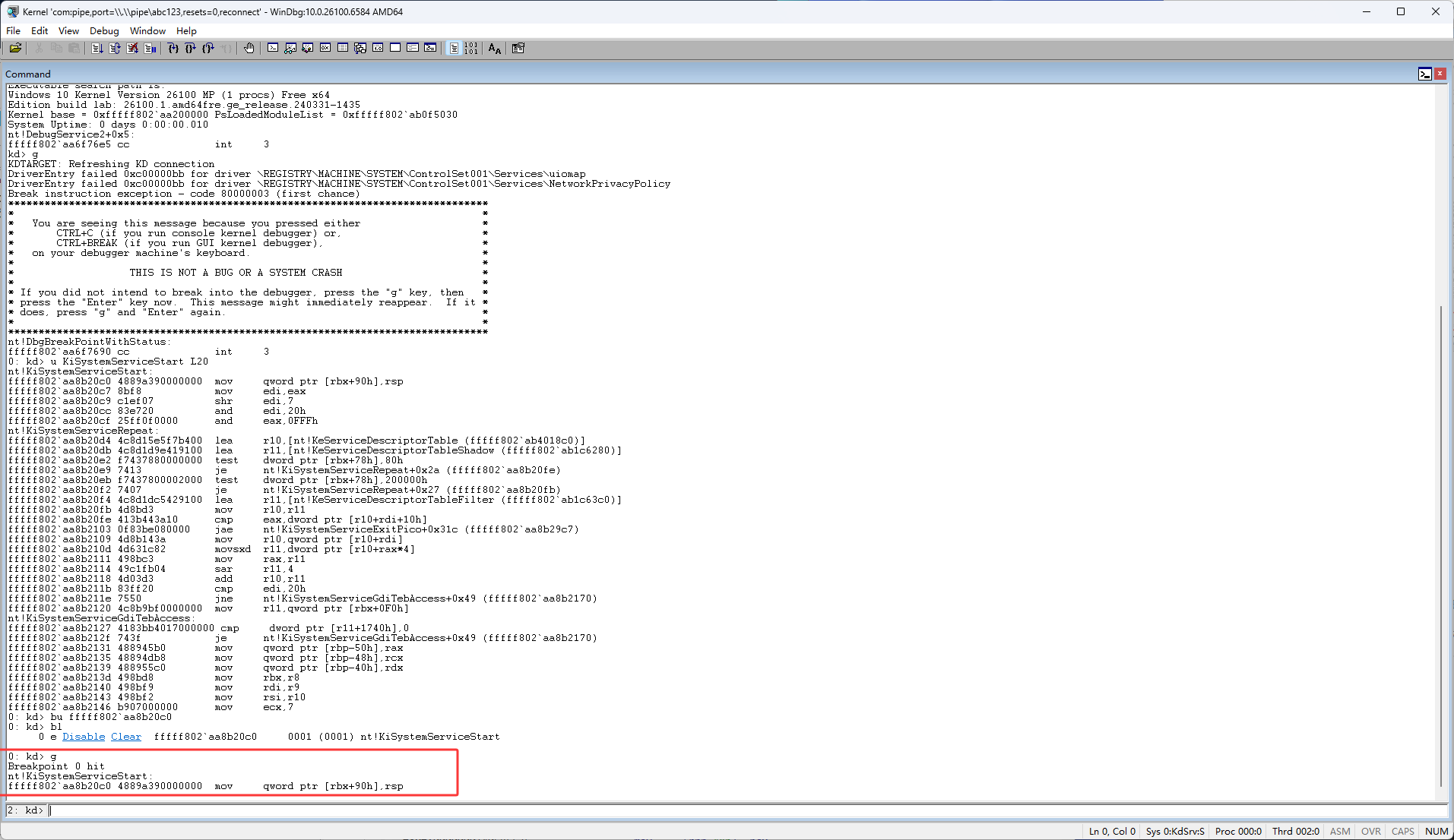 0 e Disable Clear fffff802`aa8b20c0 0001 (0001) nt!KiSystemServiceStart