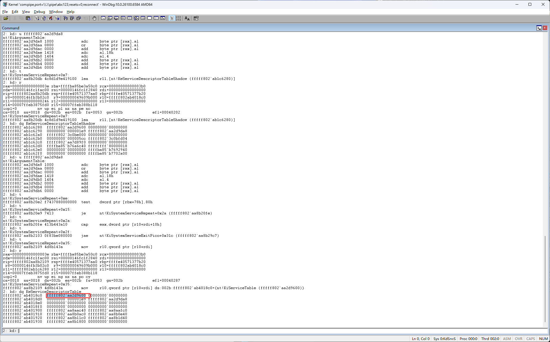 fffff802`aa8b20d4 4c8d15e5f7b400 lea r10,[nt!KeServiceDescriptorTable (fffff802`ab4018c0)]