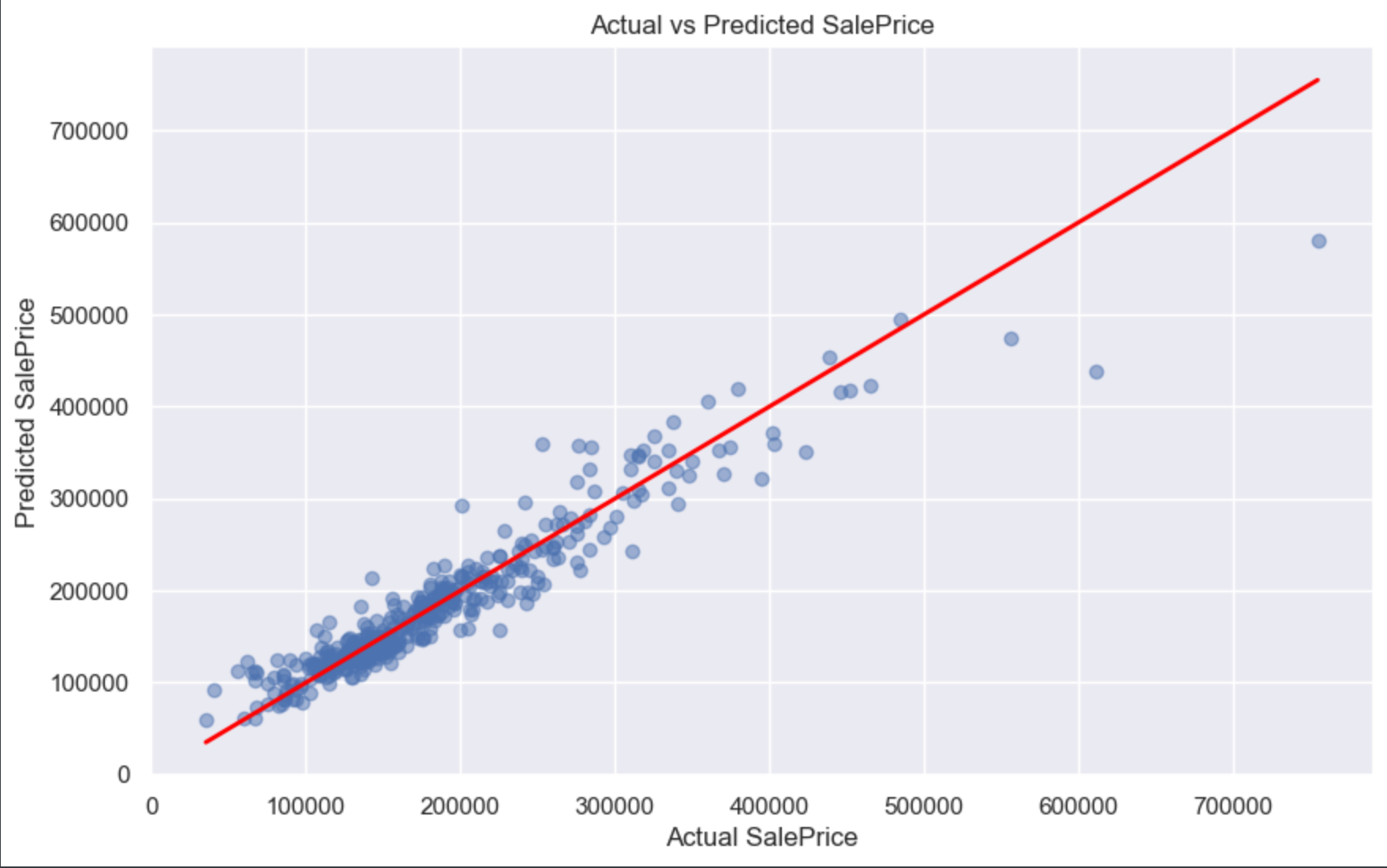 plt.title('Actual vs Predicted SalePrice')