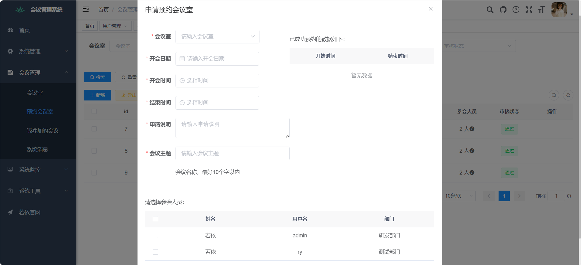 - 参会人员管理 :在预约时指定参会人员,系统通过