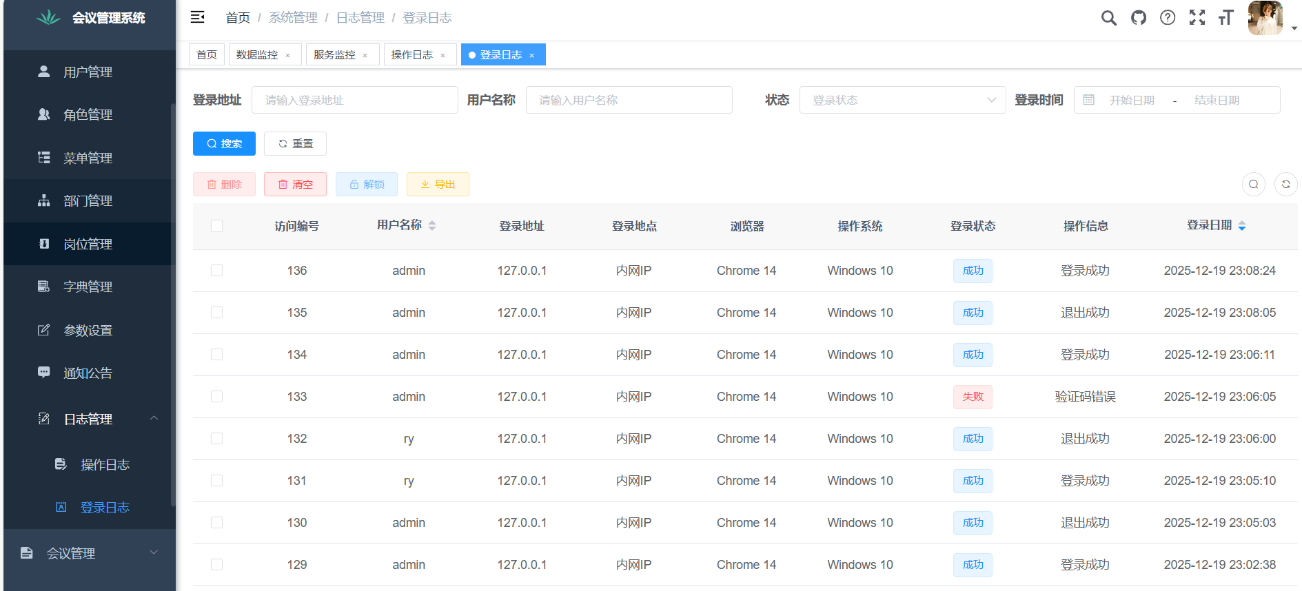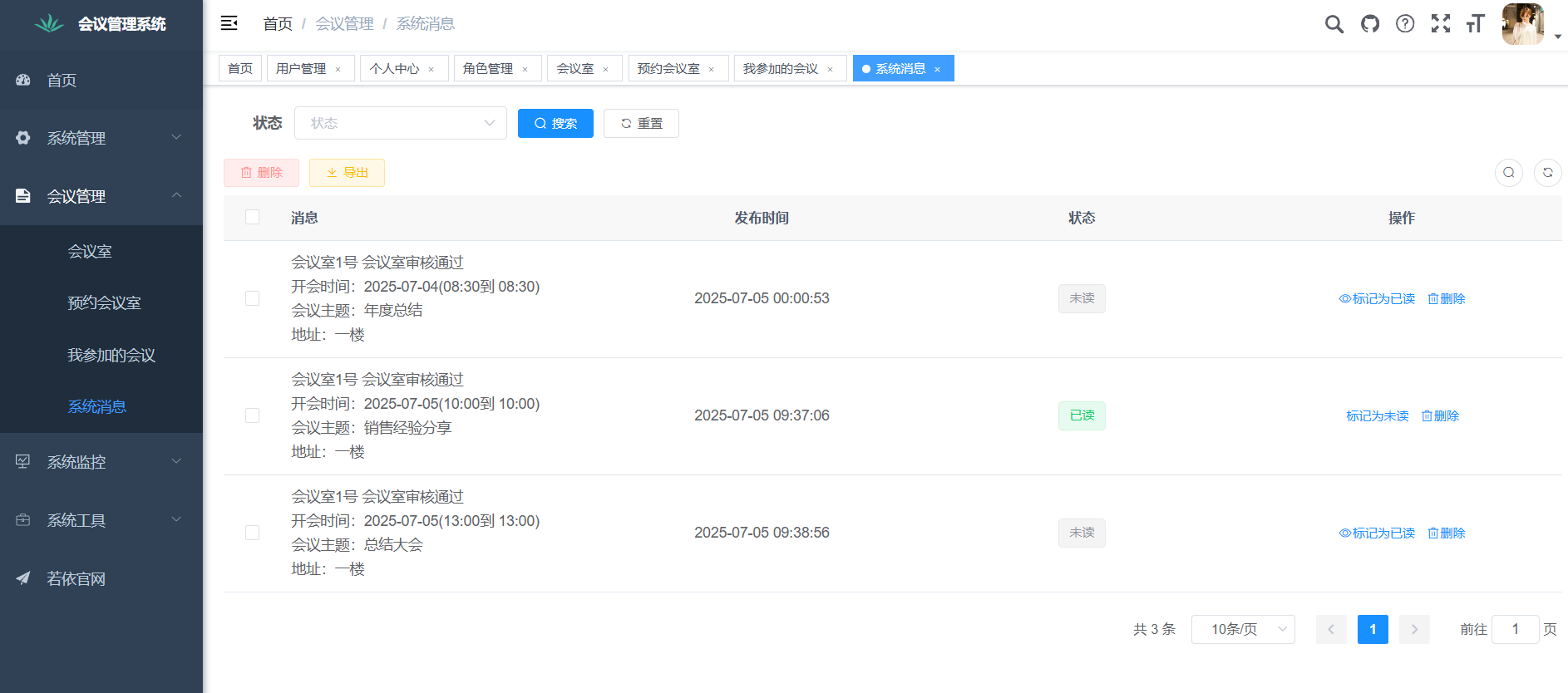 - 系统消息管理:发布和管理系统通知消息,确保用户及时接收到重要的会议通知或系统更新信息。