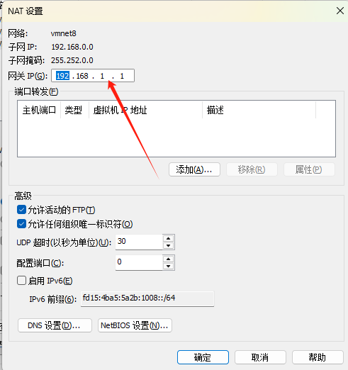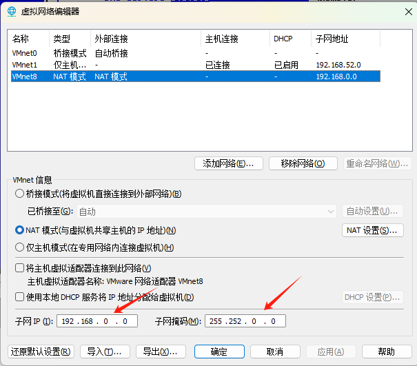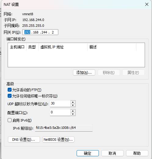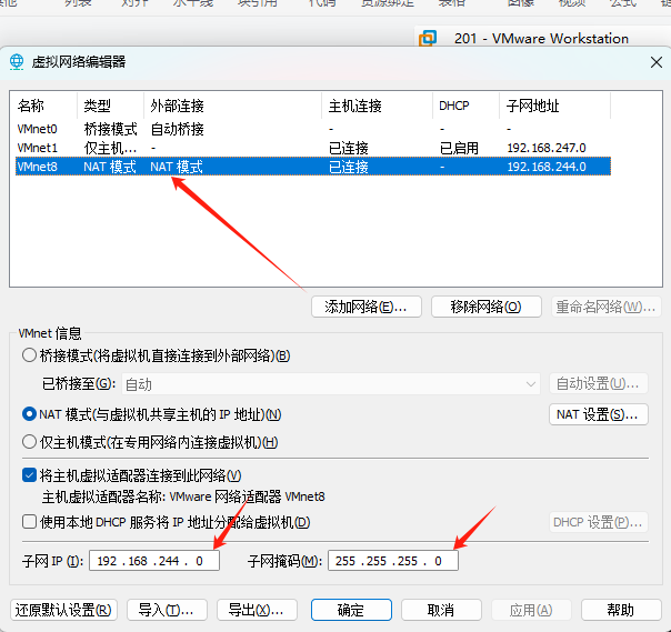 修改虚拟机的ip是: 192.168.244.1/14 中的任意一个ip 网关必须是 192.168.1.1