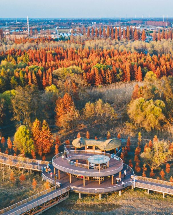 黄昏是湿地最美的时刻。夕阳给整片滩涂镀上金红,归巢的鸟群在天空画出流动的线条。远处长江口的货轮缓缓航行,近处鸟鸣渐息,只有风声穿过芦苇的沙沙声。这一刻忽然明白,这座离都市最近的湿地,守护的不仅是候鸟,更是城市人心中那片自然的向往。