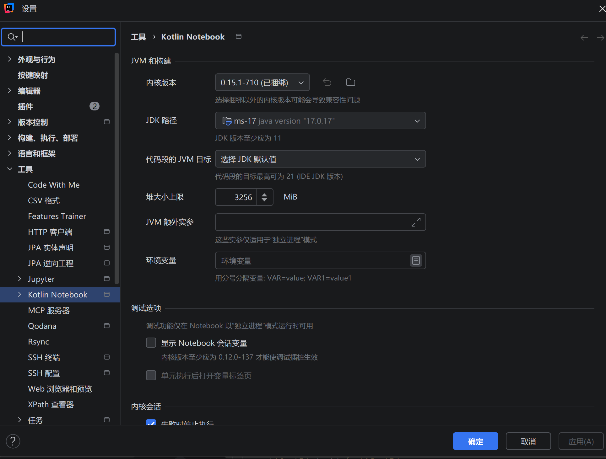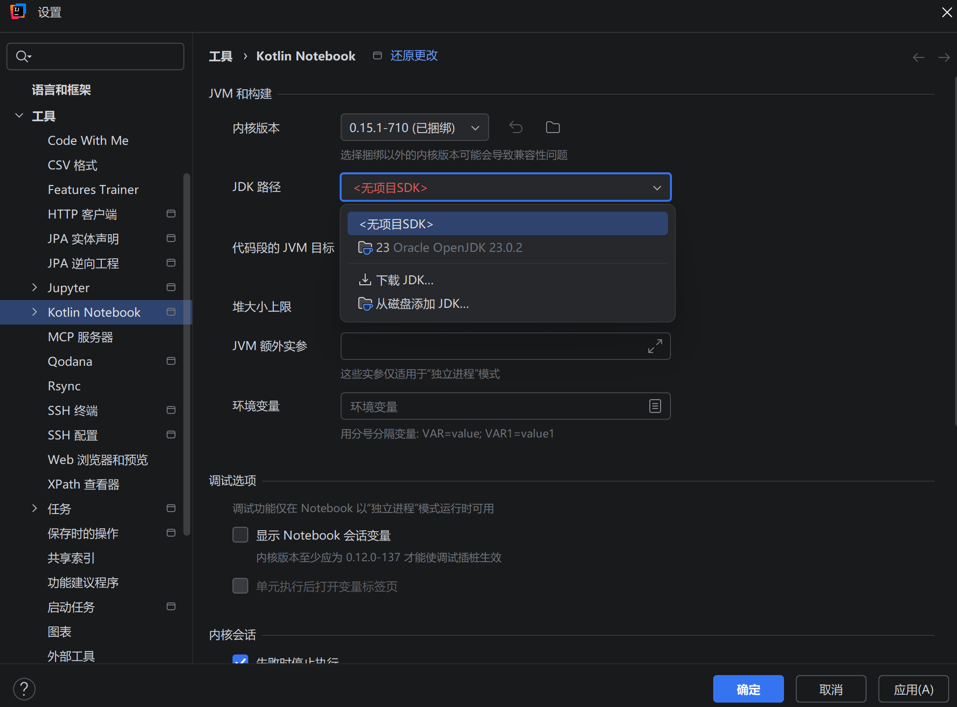 设置 -> 工具 -> Kotlin Notebook -> 选择JDK路径